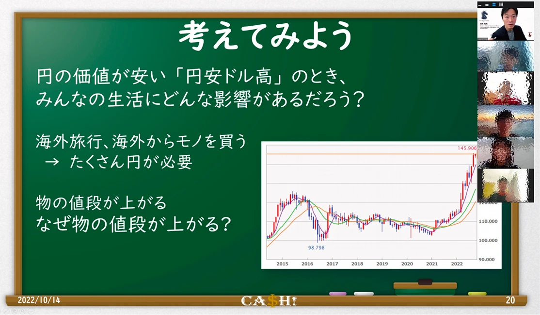 O. Kさん(中学校2年生)お金や経済に興味があり、FPの勉強も始めていたので、もっと役に立つ知識が得られるかもと思って参加しました。世界経済と株価のつながりや消費税の仕組みなど、具体的な事例が多くて分かりやすかったです。FP取得に向けて、さらに頑張る意欲が湧きました!